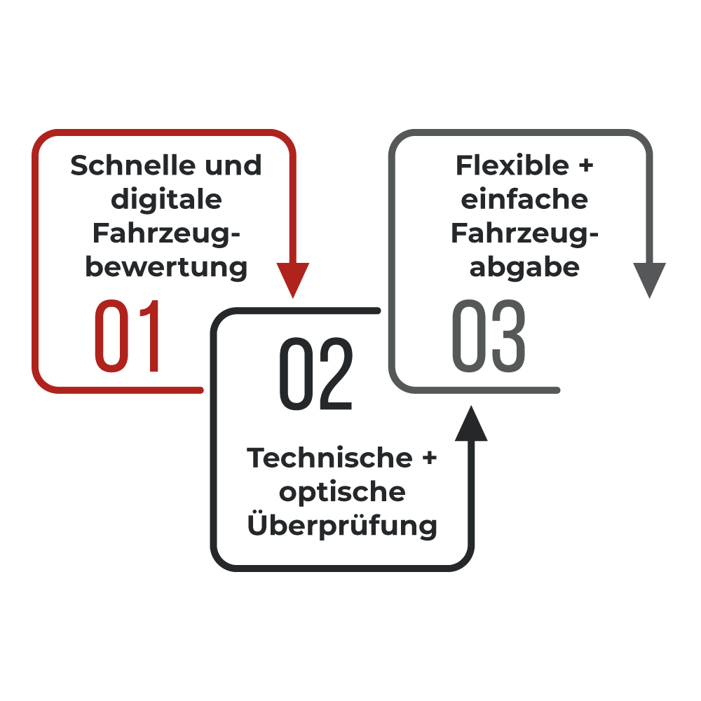 Nach der Klärung aller offenen Punkte können Sie einen Fahrzeugbewertungstermin in unseren Häusern vereinbaren und erhalten im Anschluss ein marktgerechtes und garantiertes Kaufangebot.
